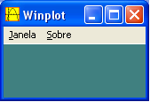 Para facilitar futuros acessos ao programa, deve-se criar links do Winplot, no desktop, por exemplo, bastando para tanto, que a partir do gerenciador de arquivos, se dê um clique com o botão do lado direito do mouse e arraste até o desktop do seu Windows. Pronto o link já está criado e para começar a utilizar o Winplot basta clicar no link, ou no programa, duas vezes, aparecendo na tela a seguinte imagem: