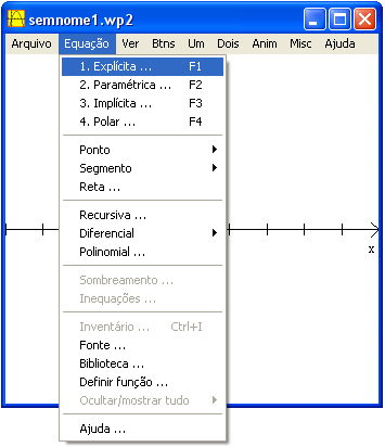 Para inserir uma função, basta clicar em Equação/Explicita, surgindo a seguinte janela:
