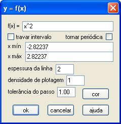 Nesta janela, deve-se digitar as expressões padrões para definir uma função de x, por exemplo x^2.