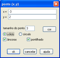 No exemplo acima, foram desenhados os planos cartesianos, e o ponto: