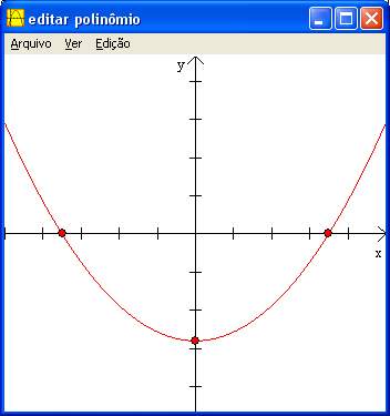 Inicialmente são plotados três pontos arbitrariamente e é exibida a janela no modo "editar polinômio". O mouse (botão esquerdo) é usado para arrastar pontos pela tela, ou então para adicionar/deletar pontos (botão direito). Os pontos que definem o polinômio estão sempre visíveis no modo edição, mas podem ser ocultados -- ver o caixa de diálogo Edição/Atributo. Clique Editar/Terminar para retornar para o menu 2D. Gráficos criados desta maneira irão aparecer no Inventário como "polinômio". Exceto pelo fato de suas equações não estarem visíveis, elas podem ser usadas do mesmo modo que exemplos do tipo y=f(x). Para visualizar os coeficientes do polinômio definido pelos pontos, basta ver em Edição/Ver equação.
