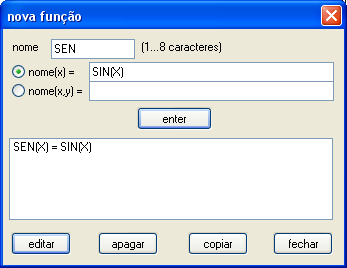 No exemplo abaixo, está sendo definido a função sen(x), como sendo a função sin(x), ou seja, agora função seno está em português.