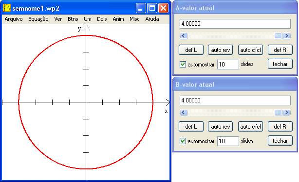 A idéia básica de fazer animações, com o Winplot, é de introduzir uma constante dentro da função (equação) definida, essas constantes são as letras do alfabeto exceto, x, y e z.
