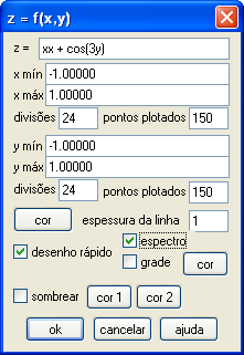 Nesta janela, deve-se digitar as expressões padrões para definir uma função de z=f(x,y).